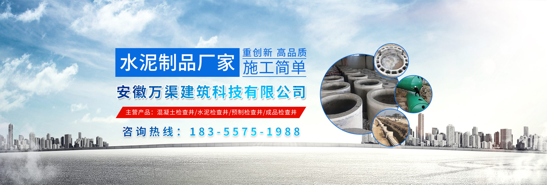安徽萬渠建筑科技有限公司是集研發(fā),生產(chǎn)制造,市場推廣為一體的綜合性企業(yè)。公司主要經(jīng)營環(huán)保型預(yù)制鋼筋混凝土裝配式組合型檢查井和蓄水裝置等城建配套產(chǎn)品。產(chǎn)品生產(chǎn)過程采用獨特的生產(chǎn)工藝,機械化流水作業(yè)。產(chǎn)品大規(guī)模生產(chǎn),生產(chǎn)效率高,耗能少,成本低,產(chǎn)品使用壽命長、免維護、無滲漏、無污染,符合“綠色環(huán)保,低碳節(jié)能”的發(fā)展要求,是傳統(tǒng)磚砌井池的理想替代產(chǎn)品。